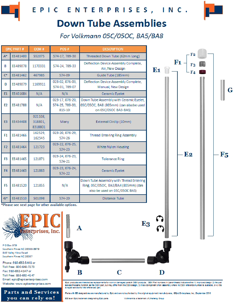 Down Tube Assemblies for Volkmann 05C/05OC, BA5/BA8 |