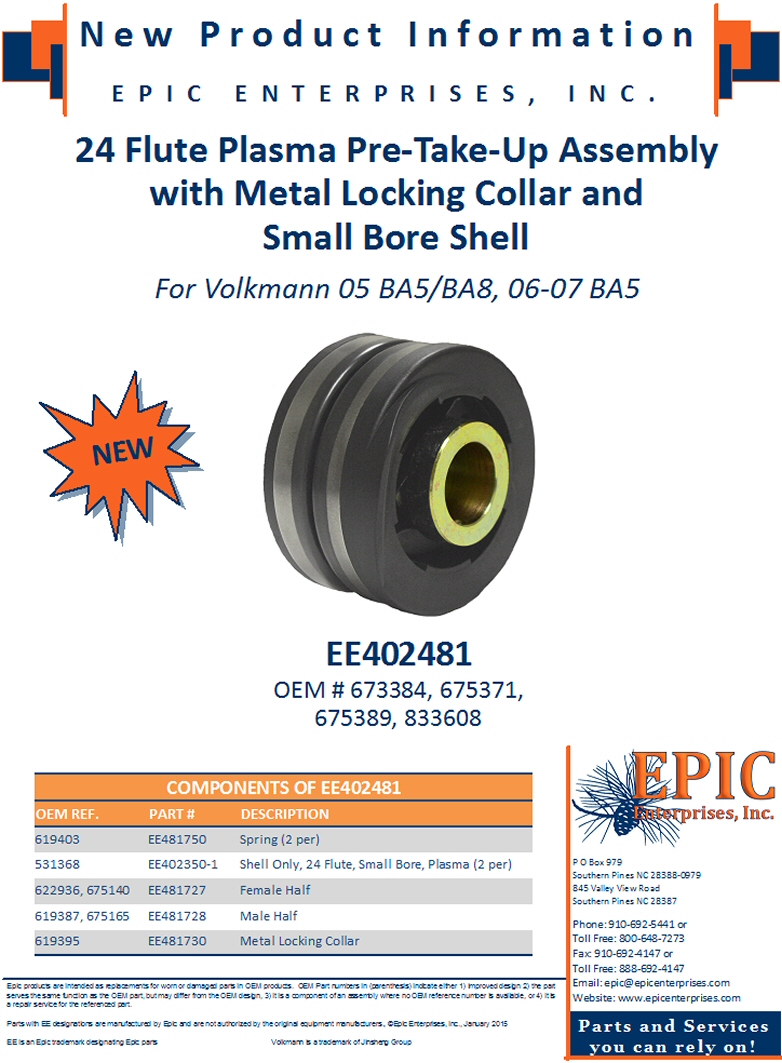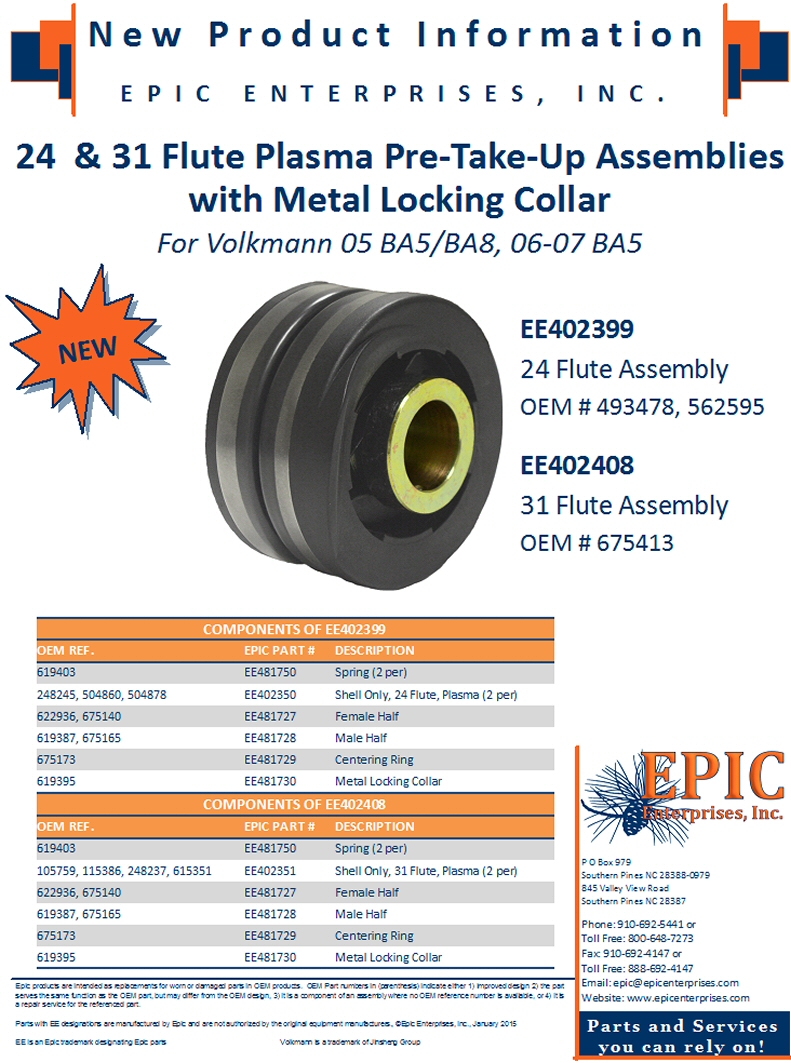 24 & 31 Flute Plasma Pre-Take-Up Assemblies with Metal Locking Collar for Volkmann 05 BA5/BA8, 06-07 BA5 |