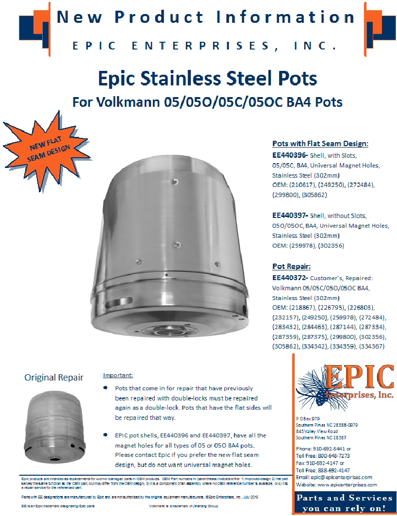 Epic Stainless Steel Pots for Volkmann 05/05C/05OC/05OCF BA5.01, BA5.02, BA5.03, BA8.01, BA8.02 |